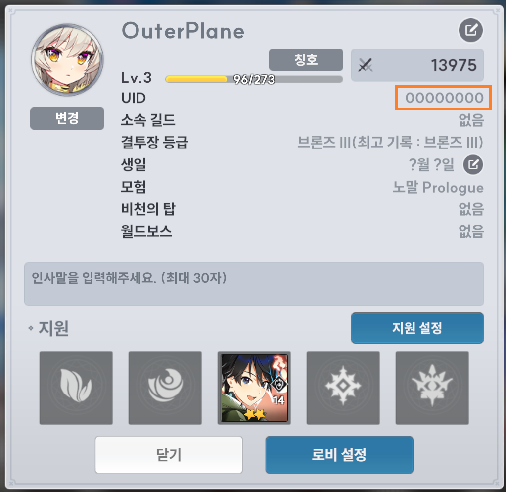(UID는 게임 설정 – [계정]으로 진입하여 확인하실 수 있습니다.)
