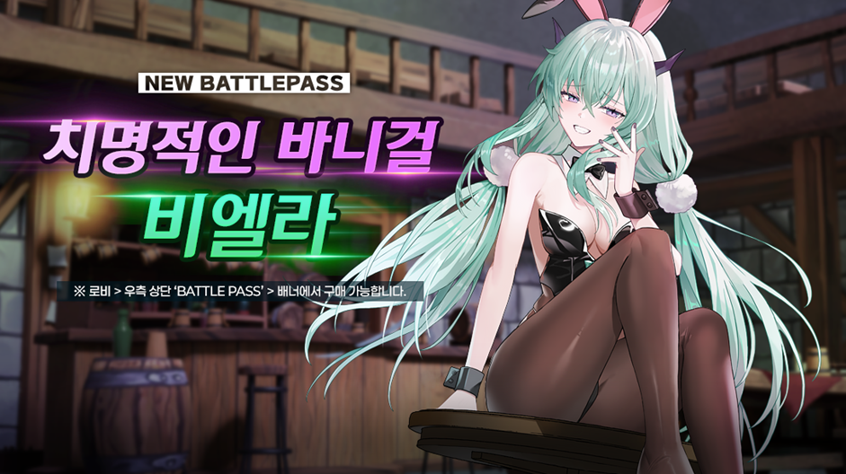 비엘라 코스튬 ‘치명적인 바니걸 비엘라’를 얻을 수 있는 배틀패스 상품이 추가되었습니다.