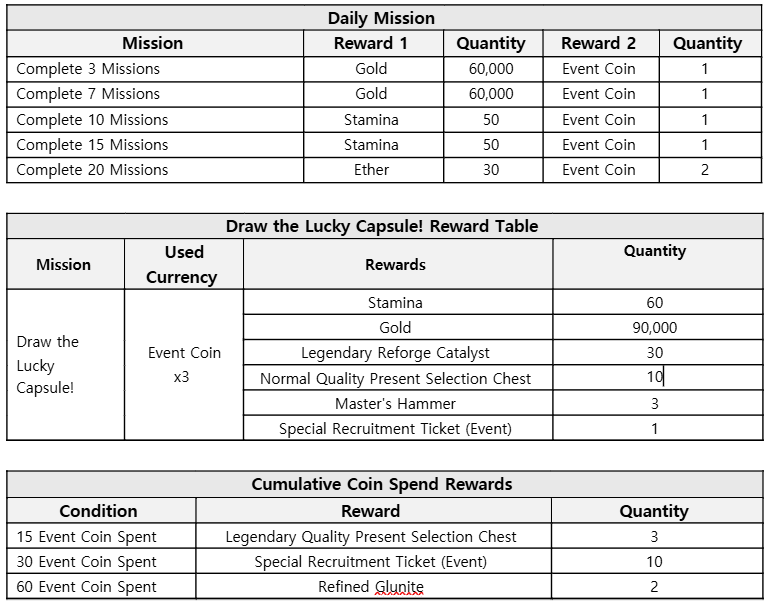 – The mission and dungeon clear history previously played will be deleted, and the achievement rewards for each dungeon, as well as the initial dungeon clear rewards, will reset.