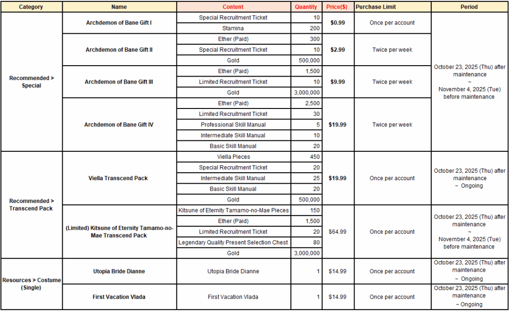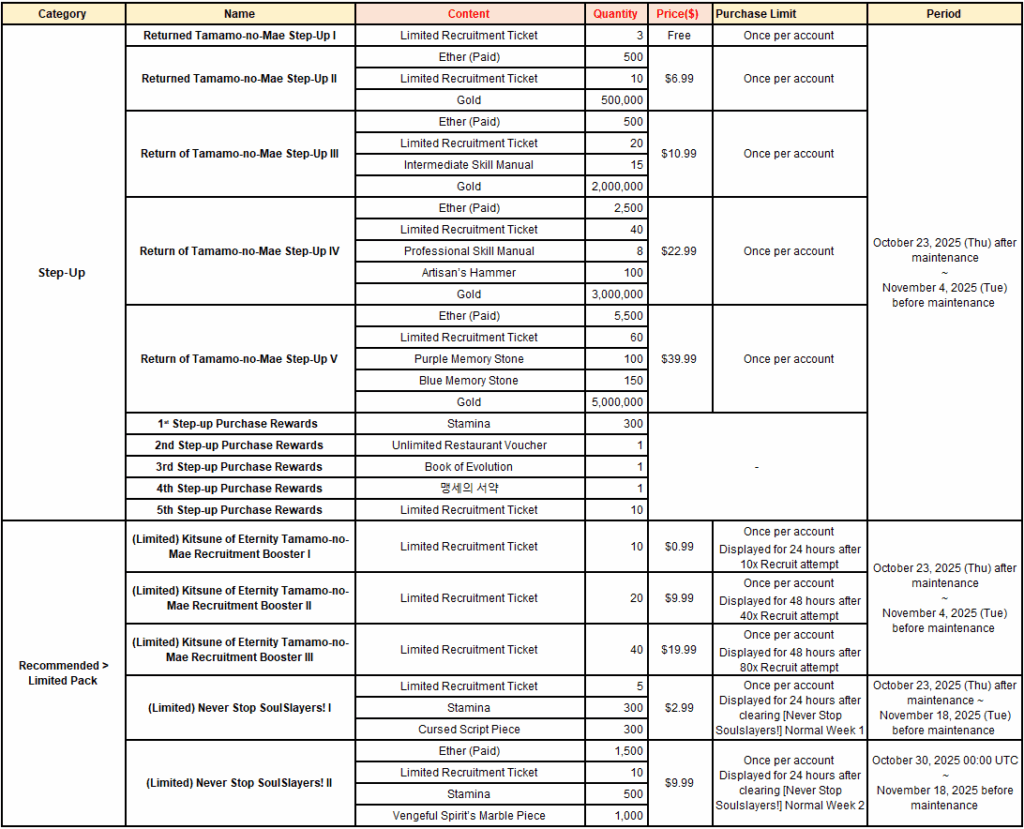 – Event Shop Availability: 10/23/2025 (Thu) after the maintenance – 11/18/2025 (Tue) before the maintenance