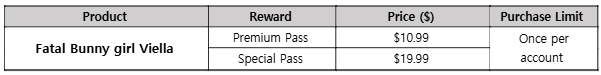 ※ The “Fatal Bunny girl Viella” costume can be obtained by purchasing the Special Pass.