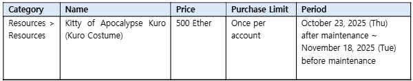 *Period: After maintenance on Oct 23, 2025 (Thu) ~ Before maintenance on Nov 18, 2025 (Tue)
