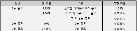 – 데미우르고스 영입 풀 및 확률은 아래 표와 같습니다.