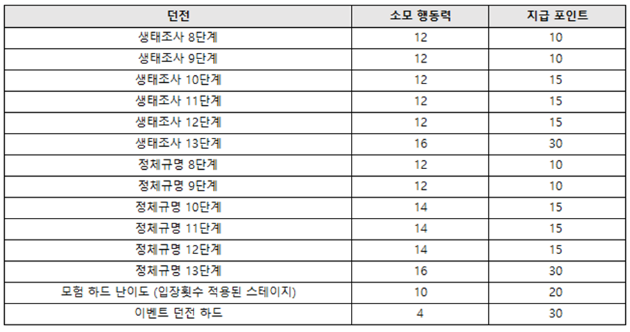 | 1 | 행동력 | 100 | 일 1회 | ||