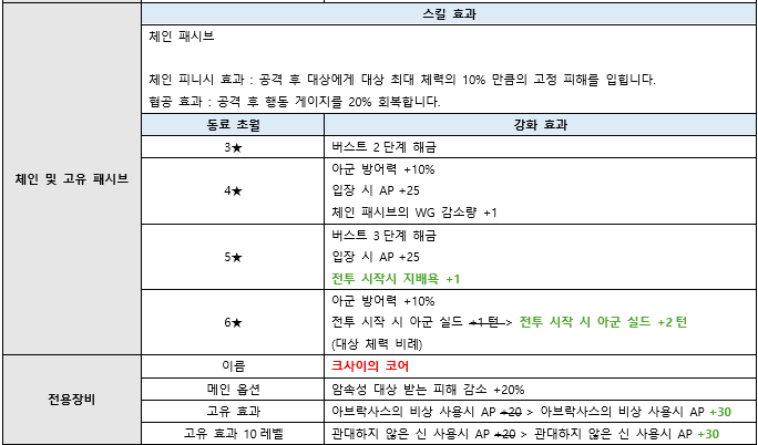 | 체인 및 고유 패시브 | 스킬 효과 | |