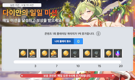 – 이벤트가 진행되는 동안 출석 보상이 지급됩니다.