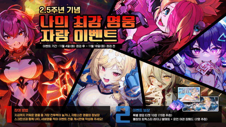 안녕하세요, GM 아메입니다. 아우터플레인의 2.5주년을 기념하여, 오너 여러분이 가장 자랑스럽다고 생각하는 ‘최강 영웅’을 보여주세요! [이벤트 참여 방법] 1️. 지금까지 키워온…